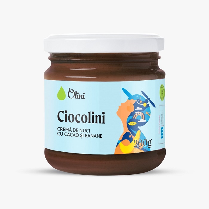 Ciocolini este o pastă tartinabilă gustoasă și foarte hrănitoare. Conține cacao, pastă de arahide din nuci prăjite, banane liofilizate și ulei de alune de pădure. Este bogată în vitamine, minerale și polifenoli și este ideală pentru un mic dejun sățios. În plus, nu conține zahăr rafinat. Sau poate fi gustarea perfectă pentru o pauză dulce.